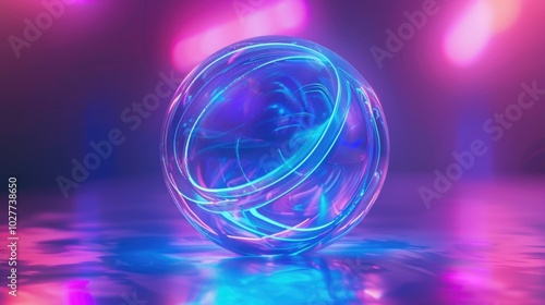 Futuristic Neon Sphere with Abstract Reflections on Glossy Surface