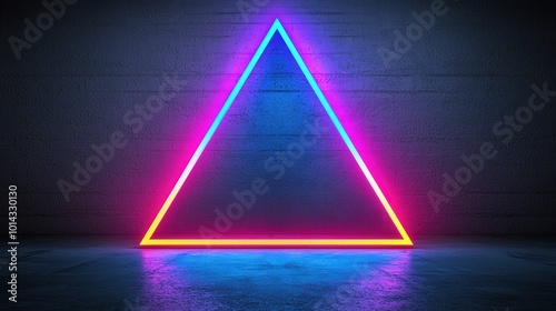 Futuristic Neon Triangle Light Installation on Concrete Wall