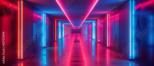 Futuristic Neon-Lit Hallway Concept with Sleek Design and Vibrant Illumination for High-End Environments