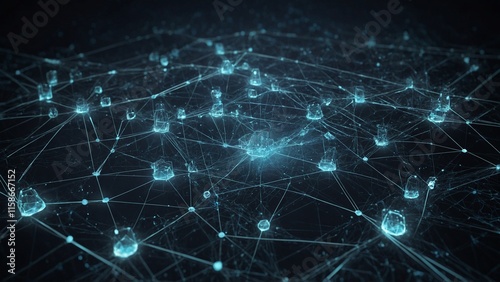 Futuristic network of glowing nodes and connections on dark background