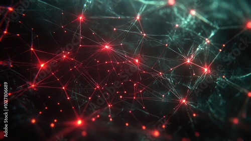 Futuristic network of interconnected glowing nodes and lines in a dark abstract space