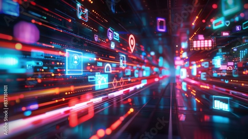 Futuristic network visualization with a seamless flow of digital icons.