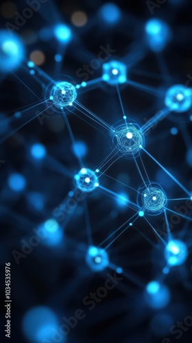 Futuristic Neural Network Abstract Blue Digital Connections Technology Background AI Big Data Visualization Science Internet Network Nodes Artificial Intelligence