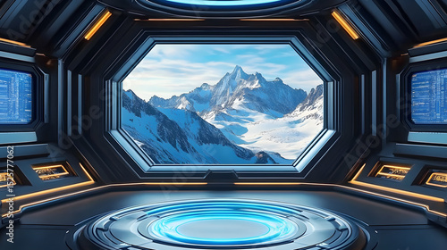Futuristic Observatory with a Panoramic View of Majestic Mountains