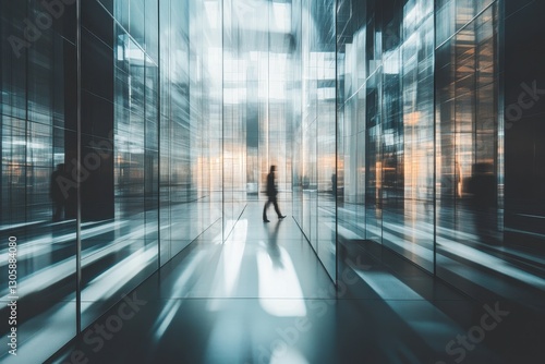 Futuristic Office Space with Glass Walls and Abstract Reflections in Modern Design