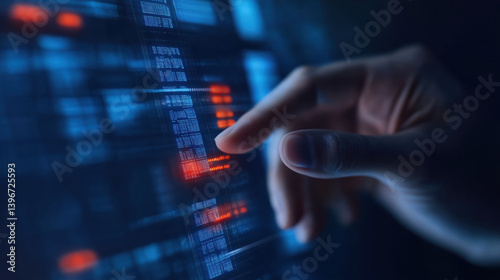 Futuristic online banking concept with biometric authentication shows promise as finger touches glowing screen, hinting at secure financial access