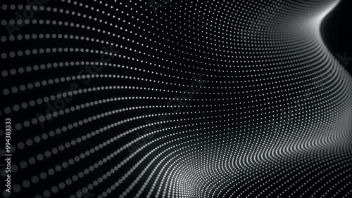 Futuristic point wave of particles. Visualization of sound waves. Technology or science banner. Abstract black and white digital 3D wave. Vector illustration.