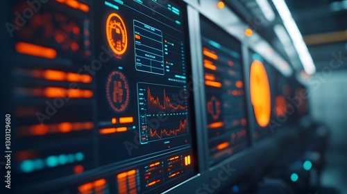 Futuristic Power Plant Digital Analytics on Screen with Advanced Technology and Monitoring System