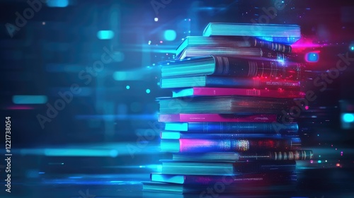 Futuristic projection of a stack of books Concept of online elearning and innovative knowledge Elearning technology concept Vector illustration