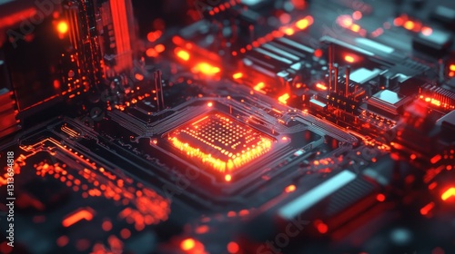 Futuristic quantum processor with glowing circuit, advanced computing concept