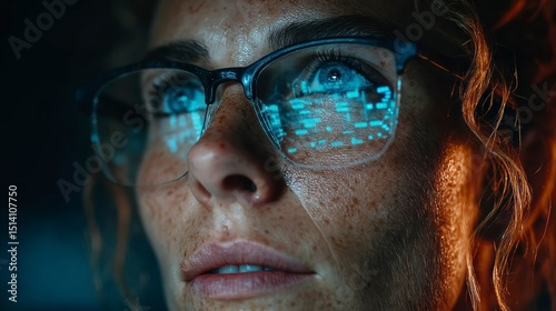 Futuristic Reflections A CloseUp of Glasses with Digital Data Overlay