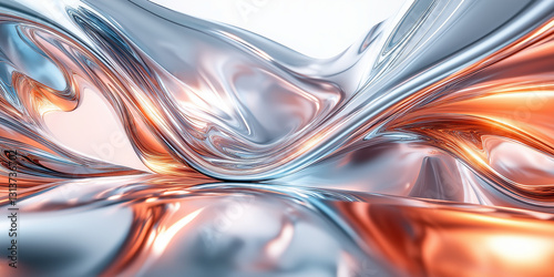 Futuristic reflective liquid metal waves in silver and copper tones, forming a smooth and glossy high-tech abstract surface.