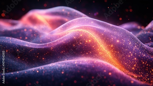 Futuristic ribbon with purple neon lines and glitch texture, floating in dark scene, glowing aura, badge, symbol of awareness, decorative graphic element, celebration