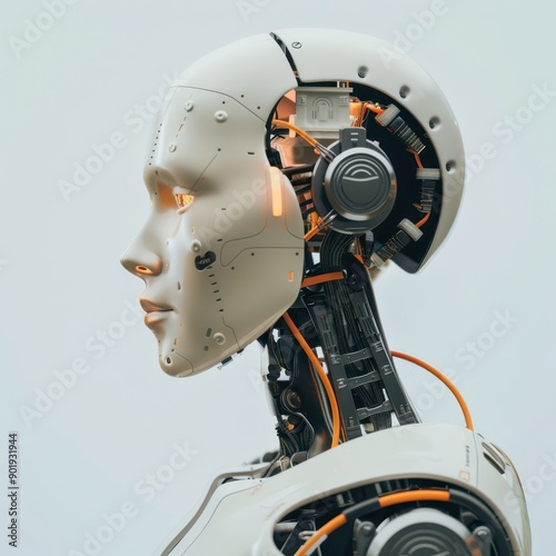 Futuristic Robot Concept Displaying Advanced Technology and Human-Like Features in Modern Art Installation