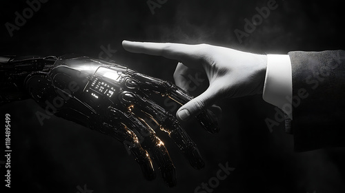 futuristic robot hand and human hand interaction touching advanced digital graph interface for technology visuals