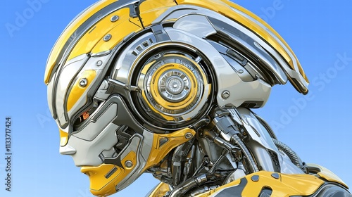 Futuristic Robot Head Design with Metallic and Yellow Accents