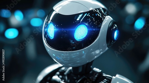 Futuristic robot with luminous blue eyes and a friendly demeanor