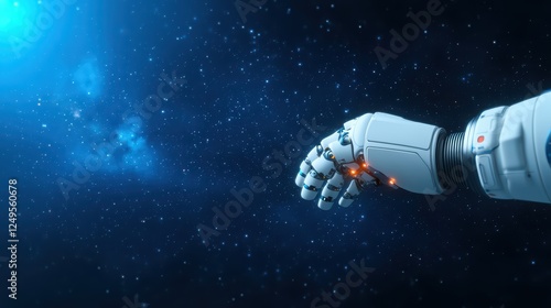 Futuristic Robotic Hand Reaching into the Vastness of Space