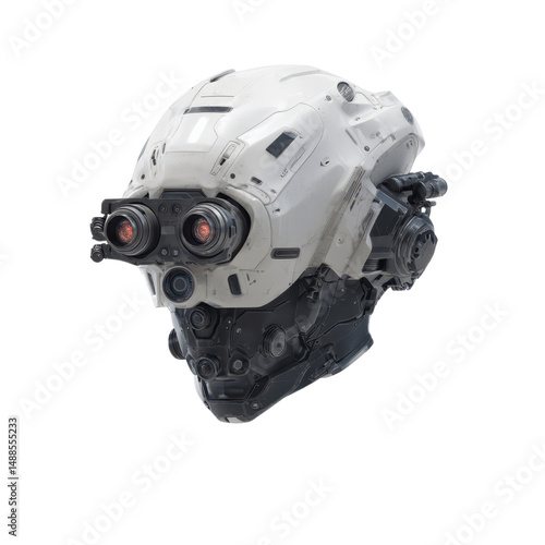 Futuristic Robotic Helmet with Binocular Vision System - Sci-Fi Technology Concept