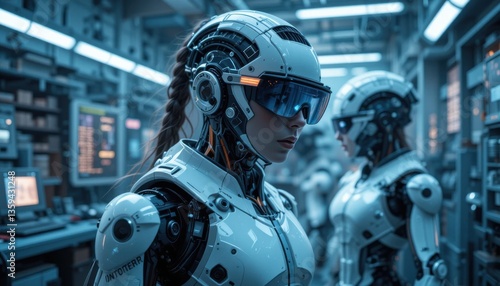 Futuristic robotics simulation high-tech laboratory sci-fi scene controlled environment close-up view ai concepts and innovations