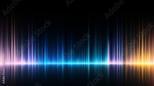 Futuristic Sci-Fi Abstract Blue And Purple Neon Light Shapes On Black Background With Empty Space For Text