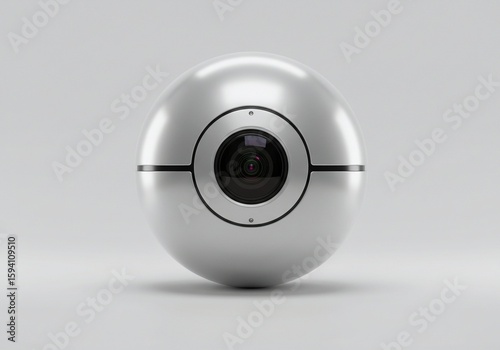 Futuristic Silver Robotic Orb with Central Camera Lens