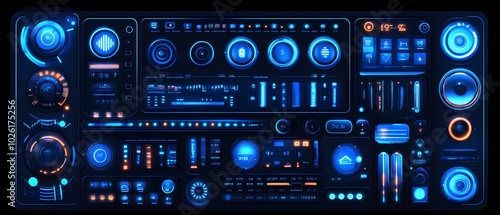 Futuristic smart home control panel of home appliances, sleek and modern digital interfaces perfect to create product designs or as part of smart home technology advertisements to attract consumers.
