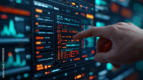 Futuristic Smart Home Control Panel with Hand Interacting with Digital Interface for Home Automation and Technology Management