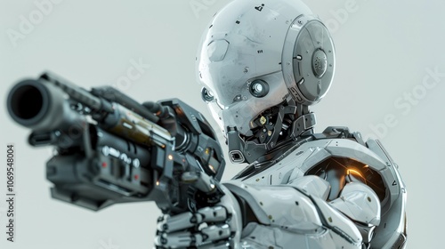 Futuristic soldier robot holding weapon, 3d rendering. AI generated images