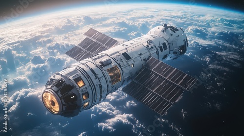 Futuristic Space Station with Hydrogen Tanks and Solar Panels in Orbit