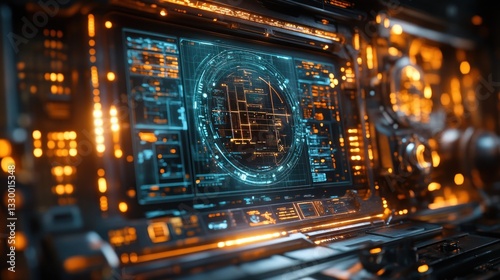 Futuristic Spaceship Control Panel: A Close-Up of Advanced Technology