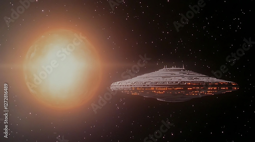 Futuristic Spaceship Exploration Near a Distant Star for Galactic Odyssey Exploration.
