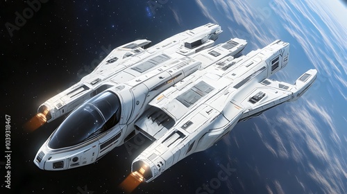 Futuristic Spaceship Navigating the Cosmic Realm with Incredible Speed and Power in an Otherworldly Space Landscape