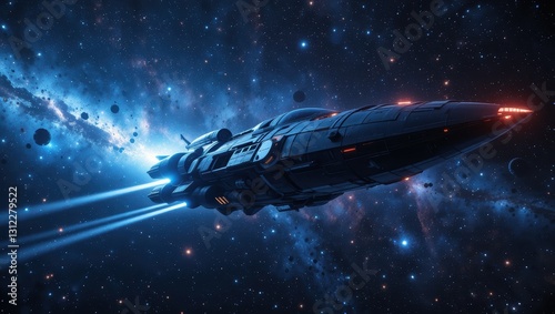 Futuristic Spaceship Traveling Through a Starry Galaxy in Deep Space with Bright Nebula