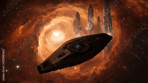 Futuristic Spaceship with Cosmic Background and Colorful Crystals