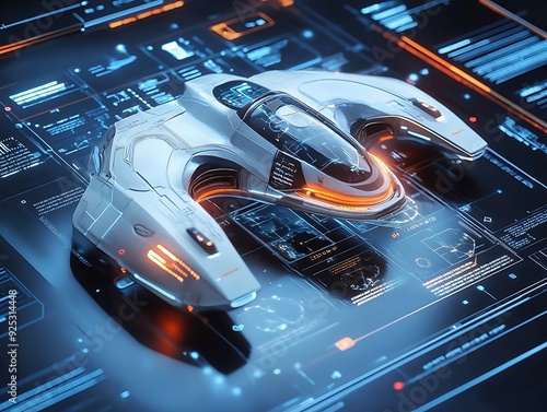 Futuristic Spaceship with Glowing Lights on a Digital Interface