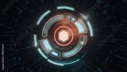 Futuristic Spinning HUD Element: Rotating Geometric Shape for Game and Infographic Communication