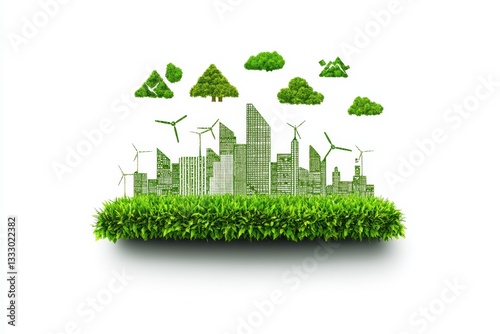 Futuristic Sustainable City Concept with Eco-Friendly Elements and Green Architecture Design