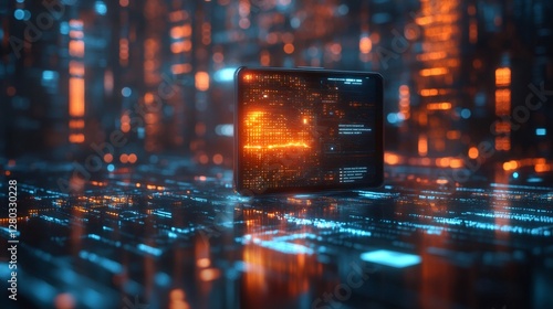 Futuristic tablet showing growing graph in digital environment