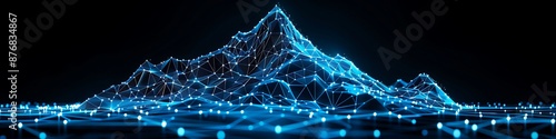 Futuristic tech design featuring a polygonal mountain with blue glowing connections on black background, vector illustration.