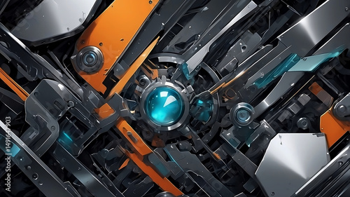 futuristic tech mechanical abstract background orange blue 3d render
