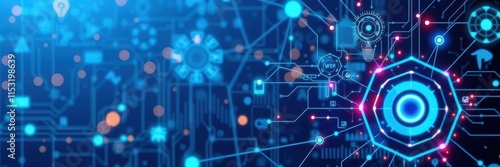 Futuristic Technology Background Featuring Circuit Patterns and Digital Elements with Bright Lights and Geometric Shapes for Creative Projects and Design