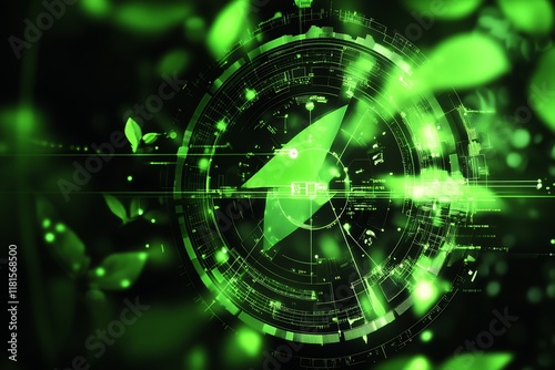 Futuristic Technology Background with Green Digital Compass Interface Data Visualization : Generative AI