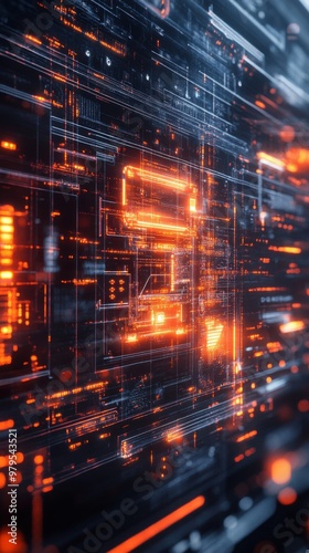 Futuristic Technology Background with Neon Lights and Abstract Patterns