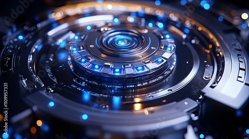 Futuristic Technology Circular Device Glowing Blue Lights