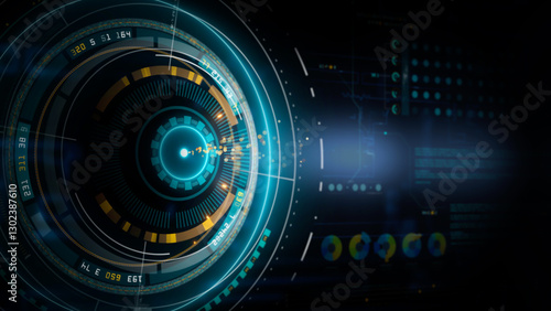Futuristic Technology Data Interface with HUD Elements, Digital Display, High-Tech Dashboard Visualization, Cyber Data Analysis, and Innovative Information Flow