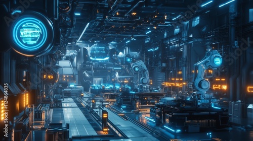 Futuristic technology factory with glowing machinery Gigantic high-tech production plant featuring advanced machinery High-tech manufacturing plant with sleek modern machinery High-tech ocean cleani