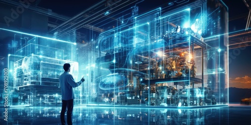 Futuristic Technology in smart automation industrial high efficiency using ai artificial intelligence, machine learning, digital twin, 5g, big data, iot, augmented mixed virtual rality, ar, vr,robot