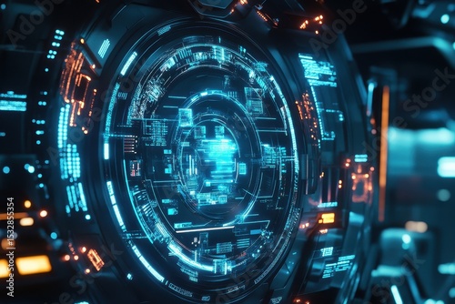 Futuristic technology interface showcasing advanced holographic displays and intricate data patterns, sci fi futuristic advanced technology background, animated hud screen