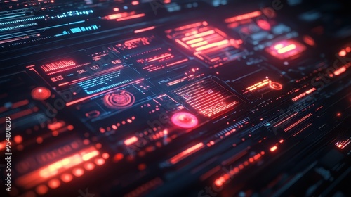 Futuristic Technology Interface with Red and Blue Glowing Lights.